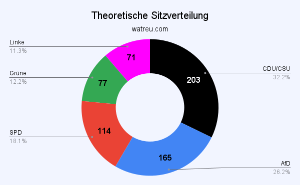 Die Sitzverteilung zeigt deutlich, dass die AfD als Gewinnerpartei hervorgehen würde, während die Union und die SPD deutliche Verluste verzeichnen.