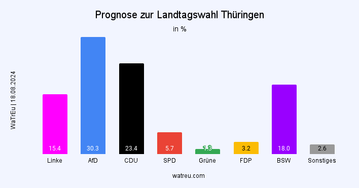 Wahlumfrage zur Landtagswahl Thüringen von Wahlkreisprognose am 01.09.2024